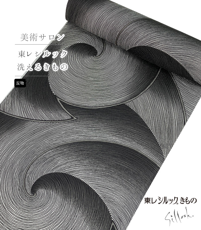 商品カテゴリ一覧 > 反物 > 着物 > 【反物】美術サロン 東レシルック小紋(渦美:黒)(胴裏無・八掛無)