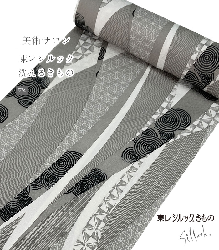 商品カテゴリ一覧 > 反物 > 着物 > 【反物】美術サロン 東レシルック小紋(よろけ縞:シルバーグレー)(胴裏無・八掛無)