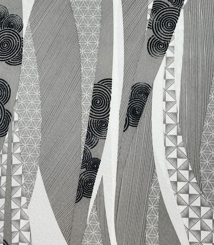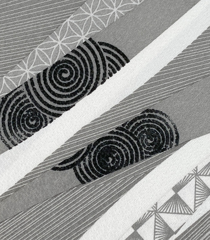 【反物】美術サロン 東レシルック小紋(よろけ縞:シルバーグレー)(胴裏無・八掛無)