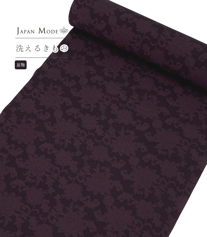 【反物】ジャパンモード小紋(華唐草:ボルドー)(胴裏無・八掛無)