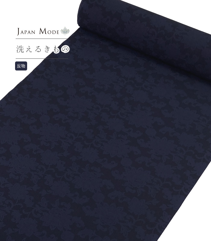【反物】ジャパンモード小紋(華唐草:ネイビーブルー)(胴裏無・八掛無)