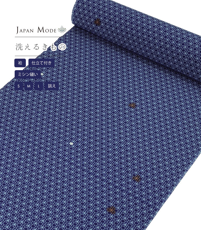 商品カテゴリ一覧 > 着物 > 洗える着物 > 洗える小紋 > 単品 > 【お仕立付き・袷】ジャパンモード小紋(変り亀甲:アイアンブルー)(ミシン縫い)(S・M・L・別誂え)