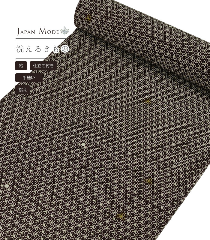 商品カテゴリ一覧 > 着物 > 洗える着物 > 洗える小紋 > 単品 > 【お仕立付き・袷】ジャパンモード小紋(変り亀甲:チョコレート)(手縫い)(別誂え)